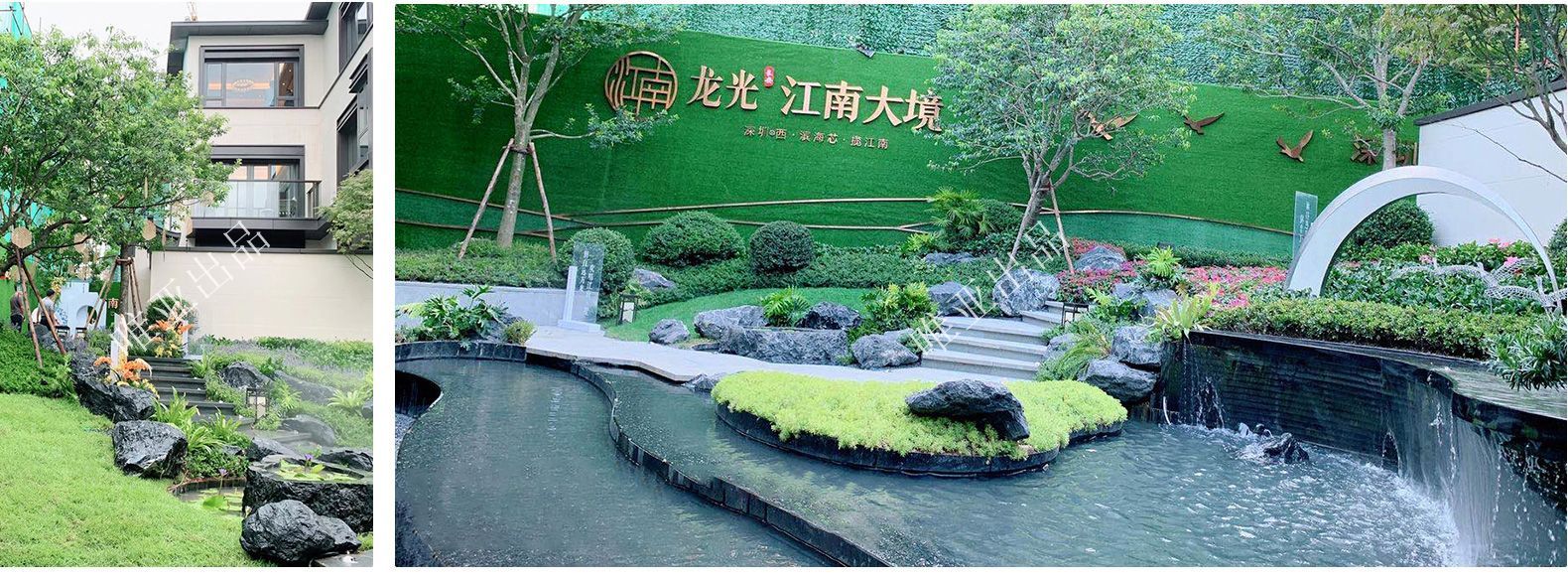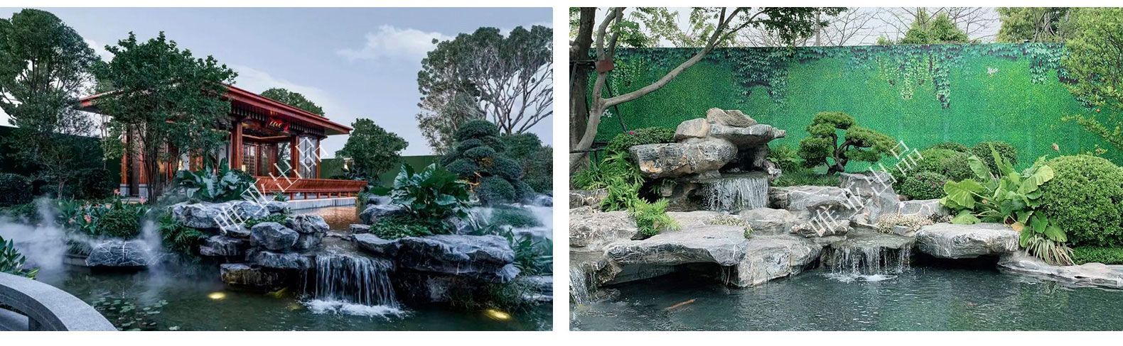 1 、假山、跌水、亭子、小路、台阶、小品、绿植,经过巧妙的设计施工,不同层次空间的呈现,打造出一个立体式园林;
