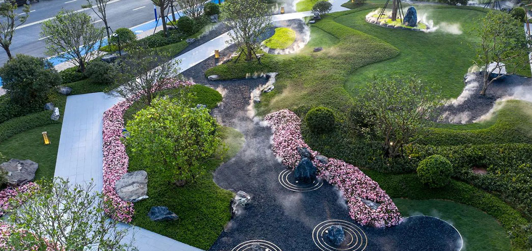 研究发现,不同的植物质地可以使人产生不同的空间尺度感受。例如,对于叶片大、粗壮的植物往往会让人感到压迫,进而给人空间狭小的感受。反之,如果布置一些质地柔细的植物,则会使人感到空间相对较大。而且通过配置质地截然不同的植物,可以给人营造更强的空间氛围。当然,可以在其中布置一些感觉适中的植物,这样使空间过渡更加自然。因此,设计师可以根据人们的这一视觉感受,将其应用搭配营造景观空间变化中。此外,在一些错落复杂的环境中,可以采用统-一质感的植物营造一-种空间统一感, 比如草坪。反之,对于一些单一空乏的环境,为了增加空间对比,营造活跃的氛围,可以将粗糙的植物与一些细腻的植物进行搭配,例如细腻草坪中的月季花丛。所以,通过不同质感的植物的配置可以营造不同的景观氛围。需要强调的是,不同的距离也会影响植物质地对景观空间的感受。比如,当人们与植物的距离较远时,植物的质感给人的感受就会下降,而植物的色彩或者形态往往会给人更强的视觉感受。
